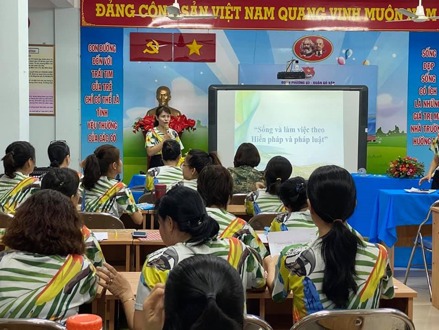 Tham gia hội thi có 4 đội thi (GV- CNV) đến từ các tổ-khối tại đơn vị. Nhân viên phụ trách công tác pháp chế của trường đầu giờ phổ biến đến CB - GV - CNV về Kế hoạch pháp luật năm 2020 và kế hoạch tổ chức " Cuộc thi ngày hội pháp luật nước Cộng hòa xã hội chủ nghĩa Việt Nam 9/11"